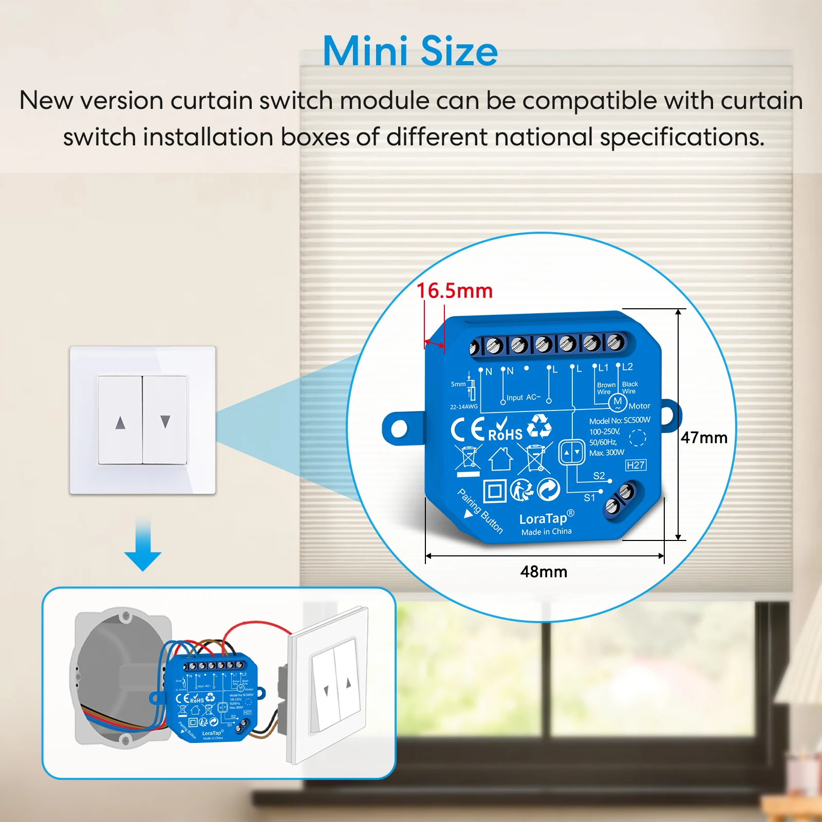 - Control del interruptor de pared: después de instalar este módulo, su interruptor manual de pared aún funciona, puede abrir o cerrar el obturador.