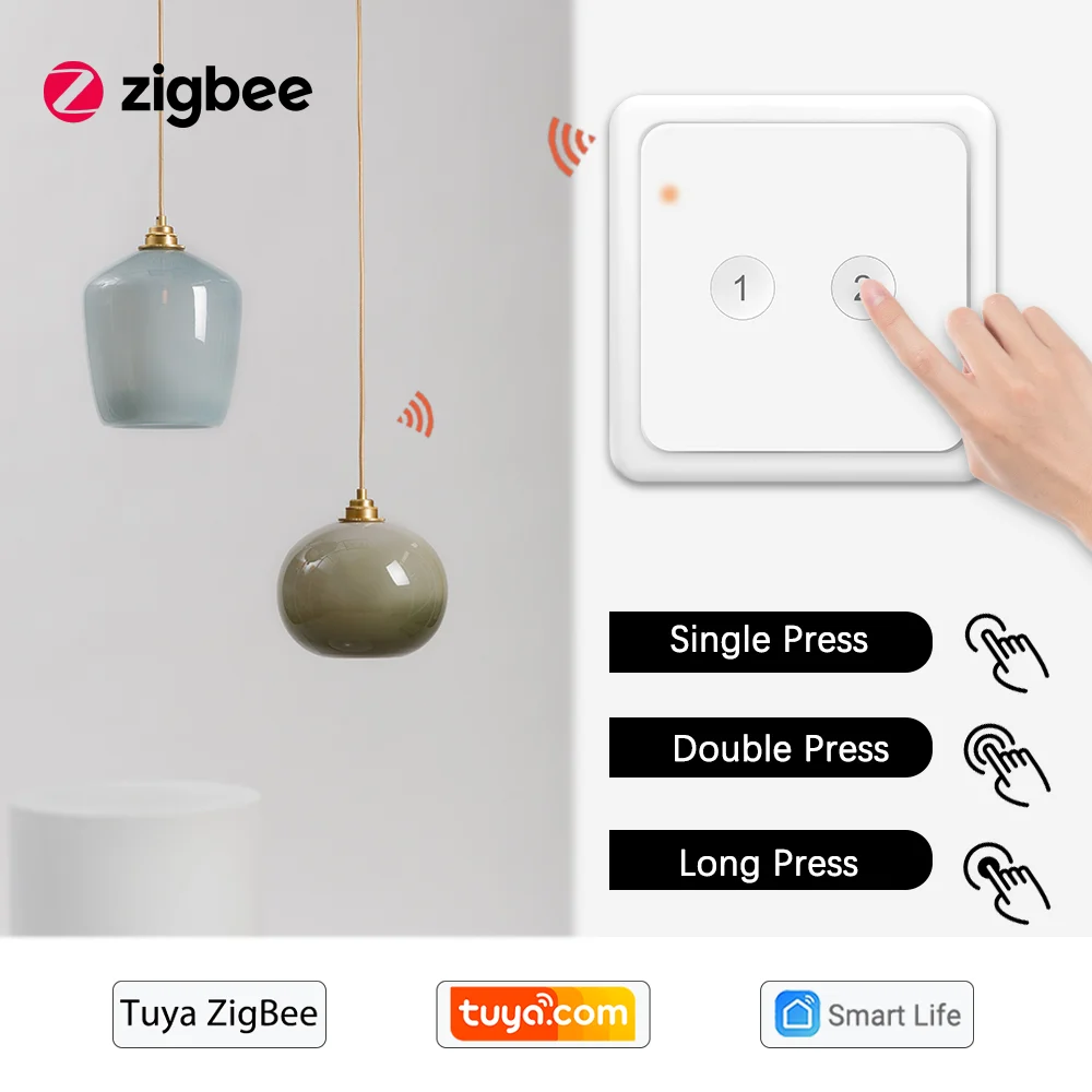 Tuya ZigBee 3.0 Interruptor de control remoto inalámbrico EU 2 Gang Compatible con Smart Life Home Assistant Zigbee2MQTT